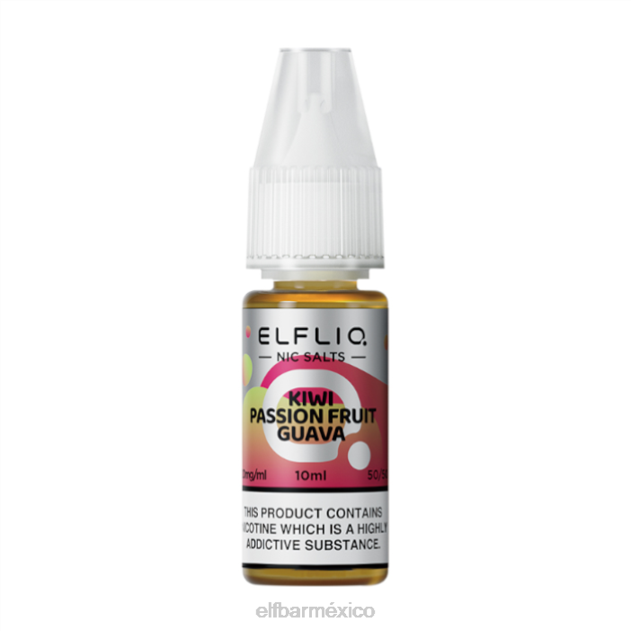 ele-líquido elfliq kiwi maracuyá guayaba 10ml nic salt es uno de la nueva gama de sabores en la colección de e-líquido elfbar 10ml como se encuentra en Los desechables de elfbar. en sales nic de 10 mg o 20 mg.