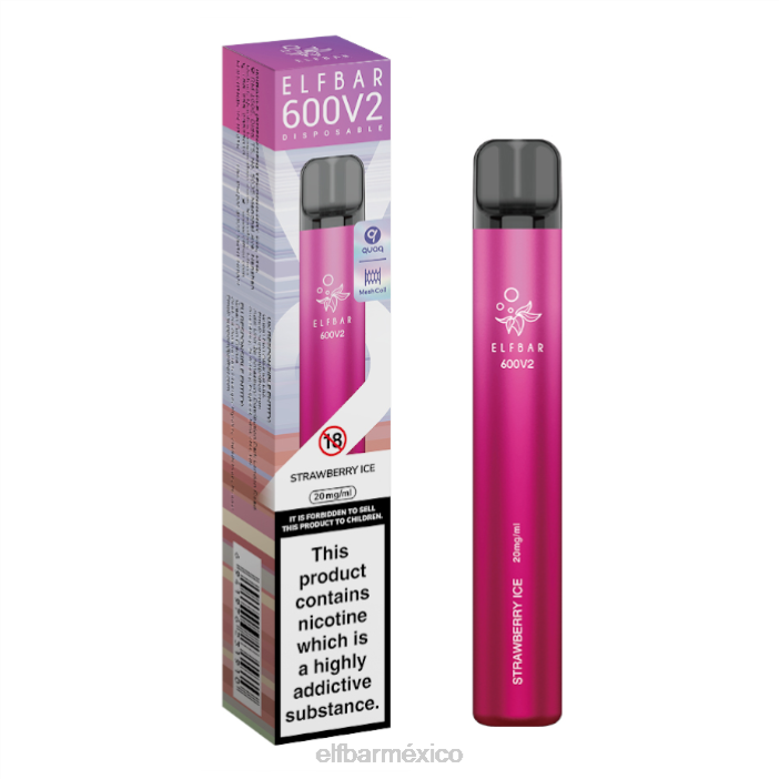 ELF BAR Mexico Vaporizador desechable 600v2 – 20 mg J40L14 hielo de fresa