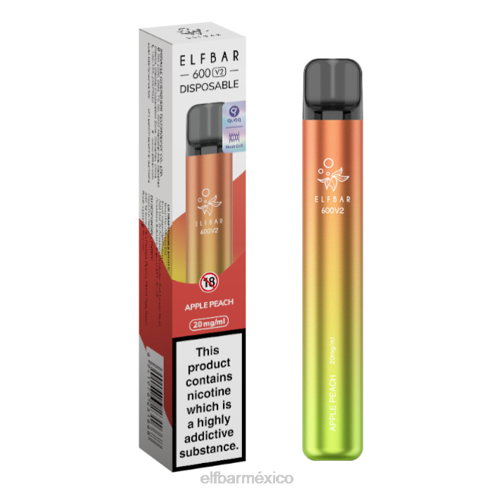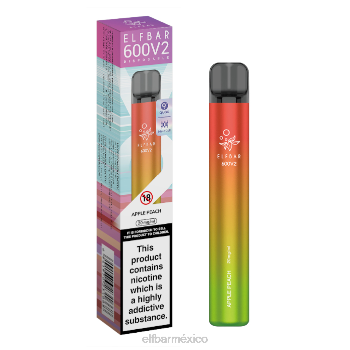 ELF BAR Sabores Mas Vendidos Vaporizador desechable 600v2 – 20 mg J40L11 durazno manzana
