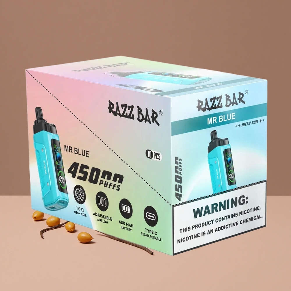 Razz Bar 45000 Puffs Vape Desechable Tipo-C Recargable Mr Azul