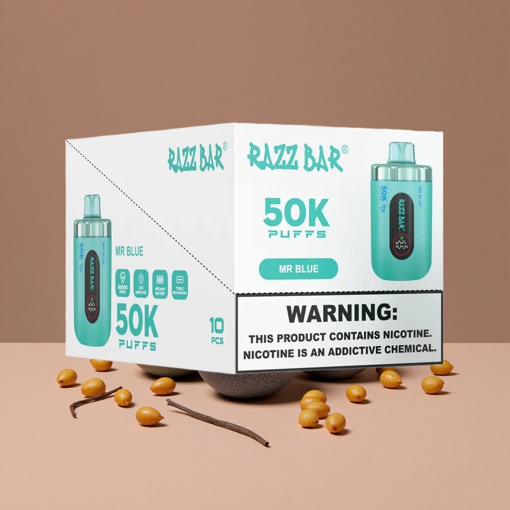 Razz Bar 50K Puffs Vape Desechable Mr Azul con Contenido de Nicotina al 2%